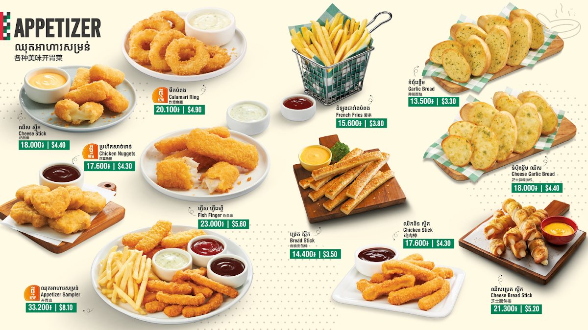 Whether you're craving a delicious pizza, a hearty pasta, or something refreshing, The Pizza Company in Ta Khmao City offers a wide range of dishes to satisfy all tastes and preferences.